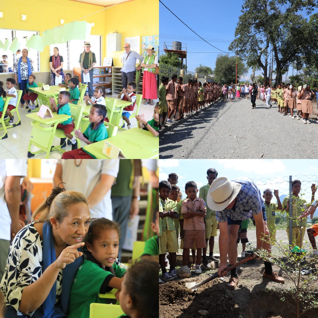 Vizita ida neโe, hodi observa direta prosesu aprendizajen iha nรญvel eskola sira, fahe materiรกl halimar ba labarik Prรฉ-Eskolรกr, no halo ativdade simbรณliku hanesan kuda ai-oan iha รกrea eskola nian, atu fรณ mahon no haktuir ambiente foun atu fรณ motivasaun ba estudante no komunidade.