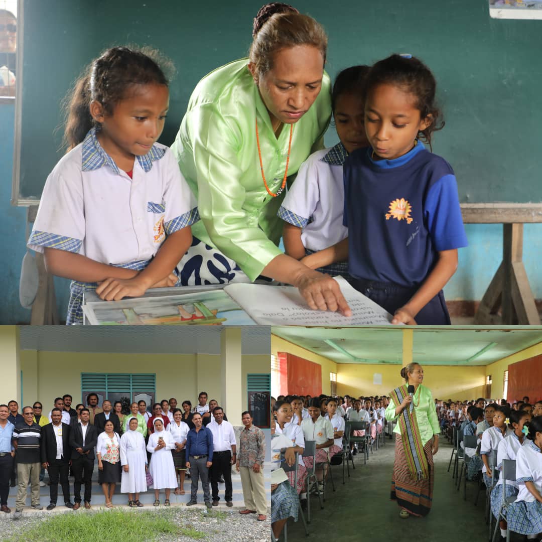 โIta bele haree no foti imajen iha sala laran tanba iha surat tahan prรกtika sira neโebรฉ halo kantinu ba leitura, numerasia, mรบzika ho arte no ita hanoin katak ida neโe maka parte ida importante atu bele reforsa estudante sira-nia prosesu aprendizajen ho prinsรญpiu ida neโebรฉ maka aprende husi halimar ka halimar husi aprende no aplika metodolojia partisipatoriuโ, Tenik S.E. Ministra