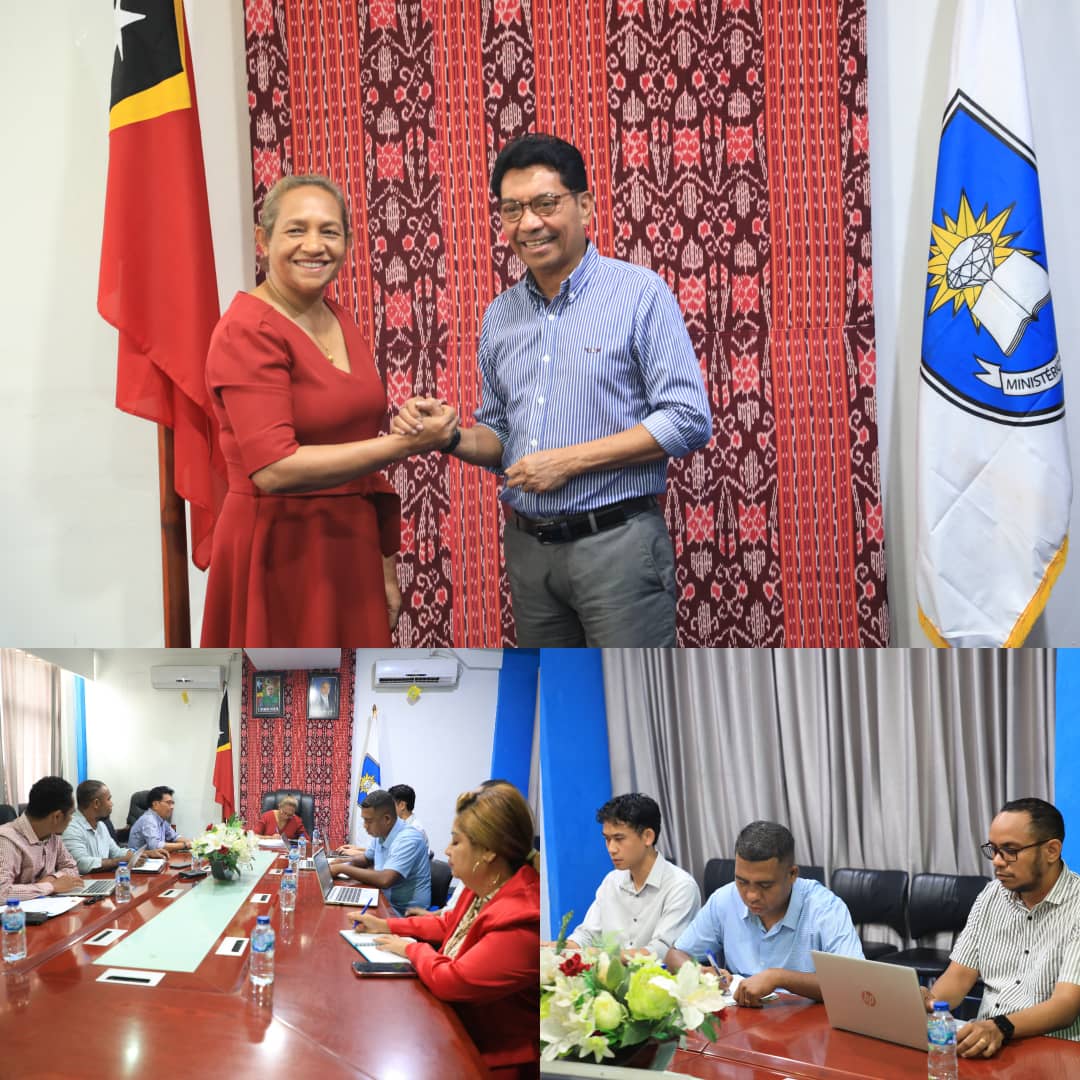 Dรญli, 3 Juรฑu 2025 โ Sua Exelรฉnsia Sekretรกriu Estadu ba Komunikasaun Sosial, Sr. Expedito Dias Ximenes, hasoru malu ho Sua Exelรฉnsia Ministra Edukasaun, Dra. Dulce de Jesus Soares, hodi aprezenta kona-ba programa literasia dijitรกl ba eskola sira iha Timor-Leste. Sorumutu neโe realiza iha Sala VIP Ministรฉriu Edukasaun, Vila-Verde.