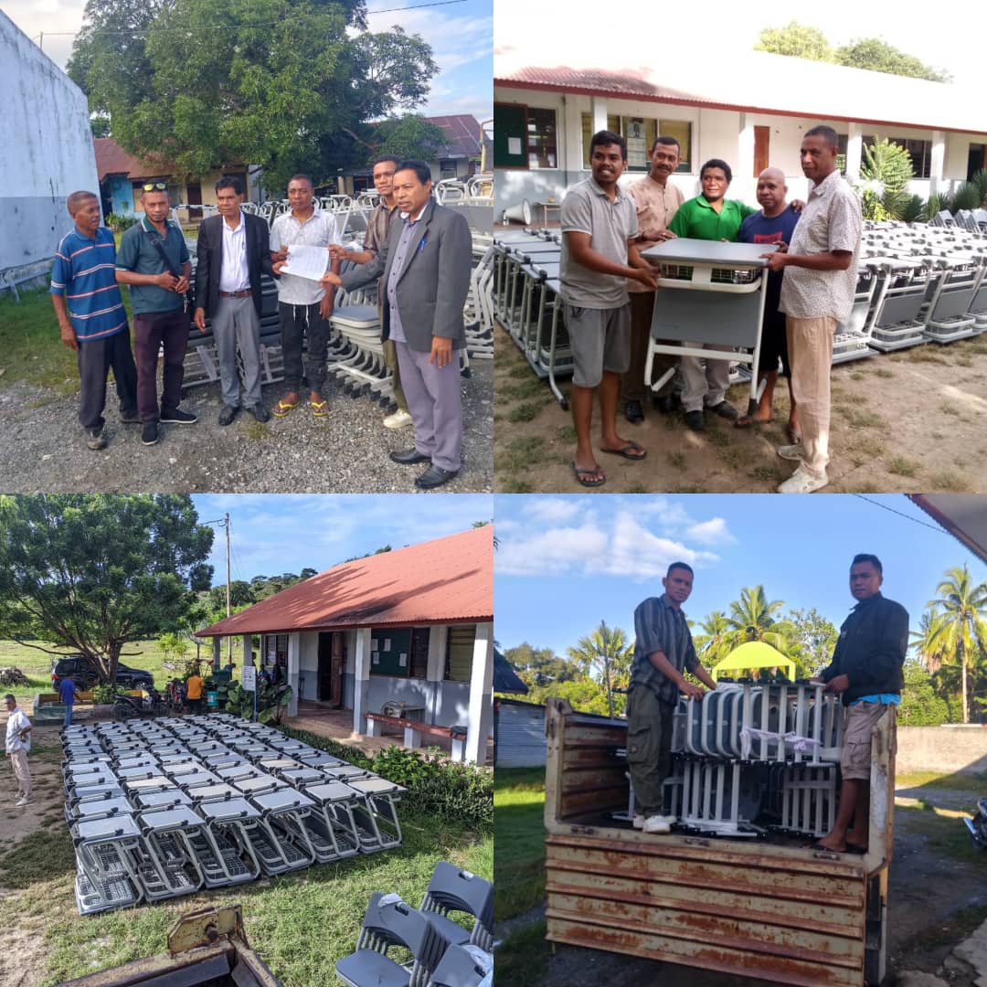 MinistΓ©riu Edukasaun liu-husi Diresaun Nasional PatrimΓ³niu no LojΓstika (DNPL) distribui kadeira no meza hamutuk atus lima sianulo resin neβen (596) ba munisΓpiu haβat (4) mak LiquiΓ§Γ‘, ESGP FiliΓ‘l de Bogoro kadeira 60 no meza 60, DΓli, EPE Francisco Xavier Dare, kadeira 40 no meza 16, Viqueque ESG 4 de Setembro kadeira 90 no meza 90, no LautΓ©m ESH No. 1 Lautem, meza 120 ho Kadeira 120.