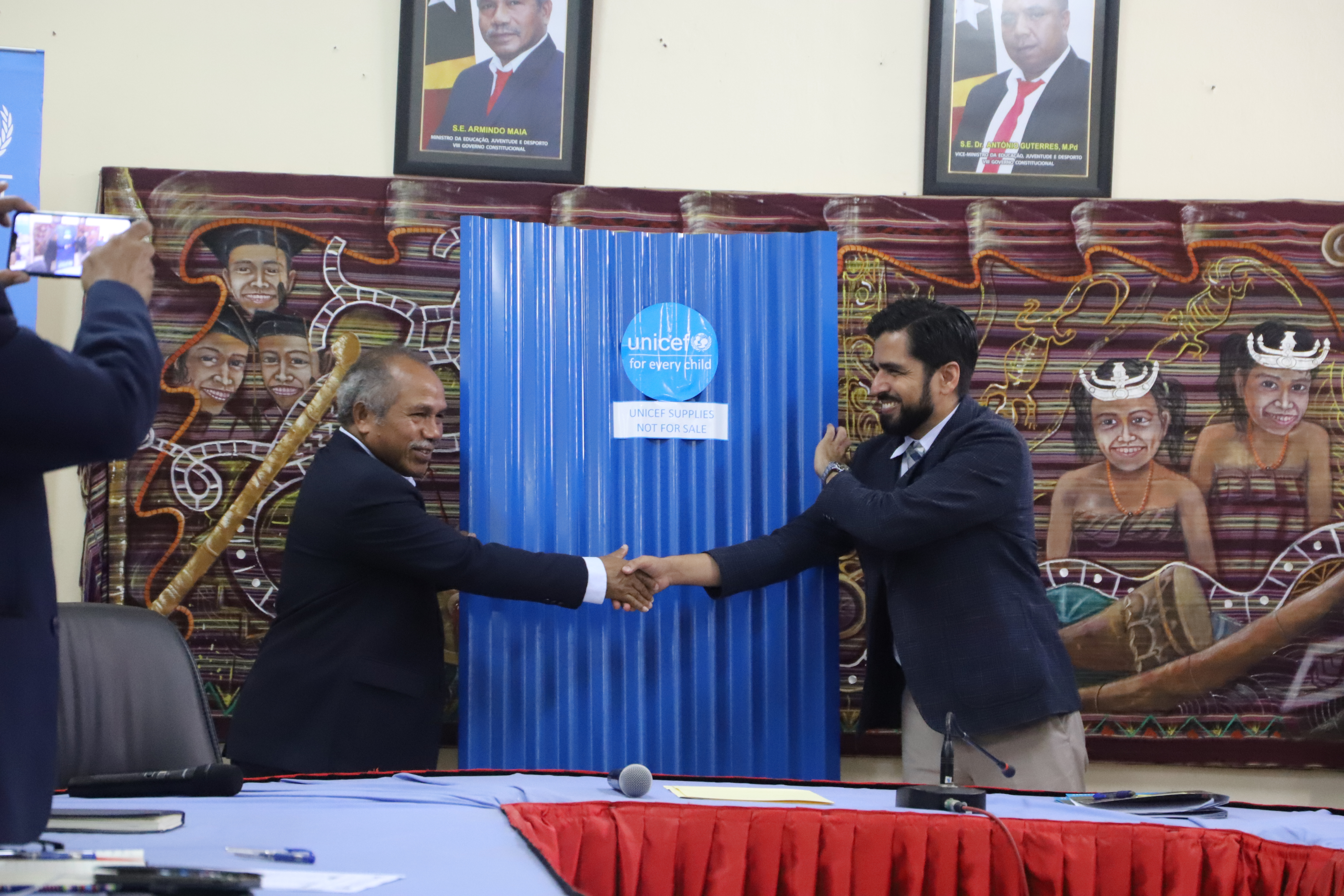 Diloi, 6 Janeiru 2023 (SAPIENTIA)-Ministériu Edukasaun, Juventude no Desportu (MEJD) simu apoiu materiál konstrusaun emerjénsia hos parseíru dezenvolvimentu, United Nations International Children’s Emergency Fund (UNICEF) atu rekupera hikas kondisaun eskola 15 iha Munisípiu hitu ne’ebe udan no anin sobu estraga iha Dezembru 2022 to’o Janeiru 2023.